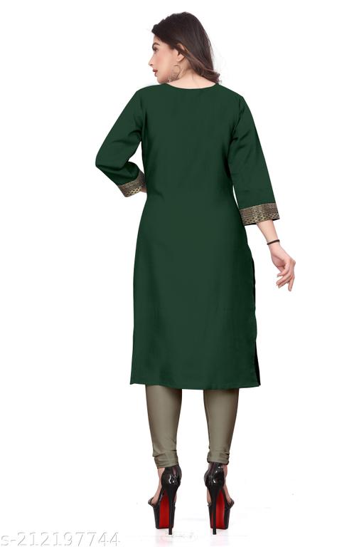 Name: Desigener Kurtis New Collection Plain Cotton Golden Lace Border Pattern Casual Kurta for Girls & Women