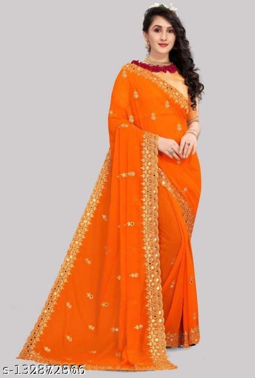 HEAVY CUTWORK EMBROIDERY MIRROR SAREE